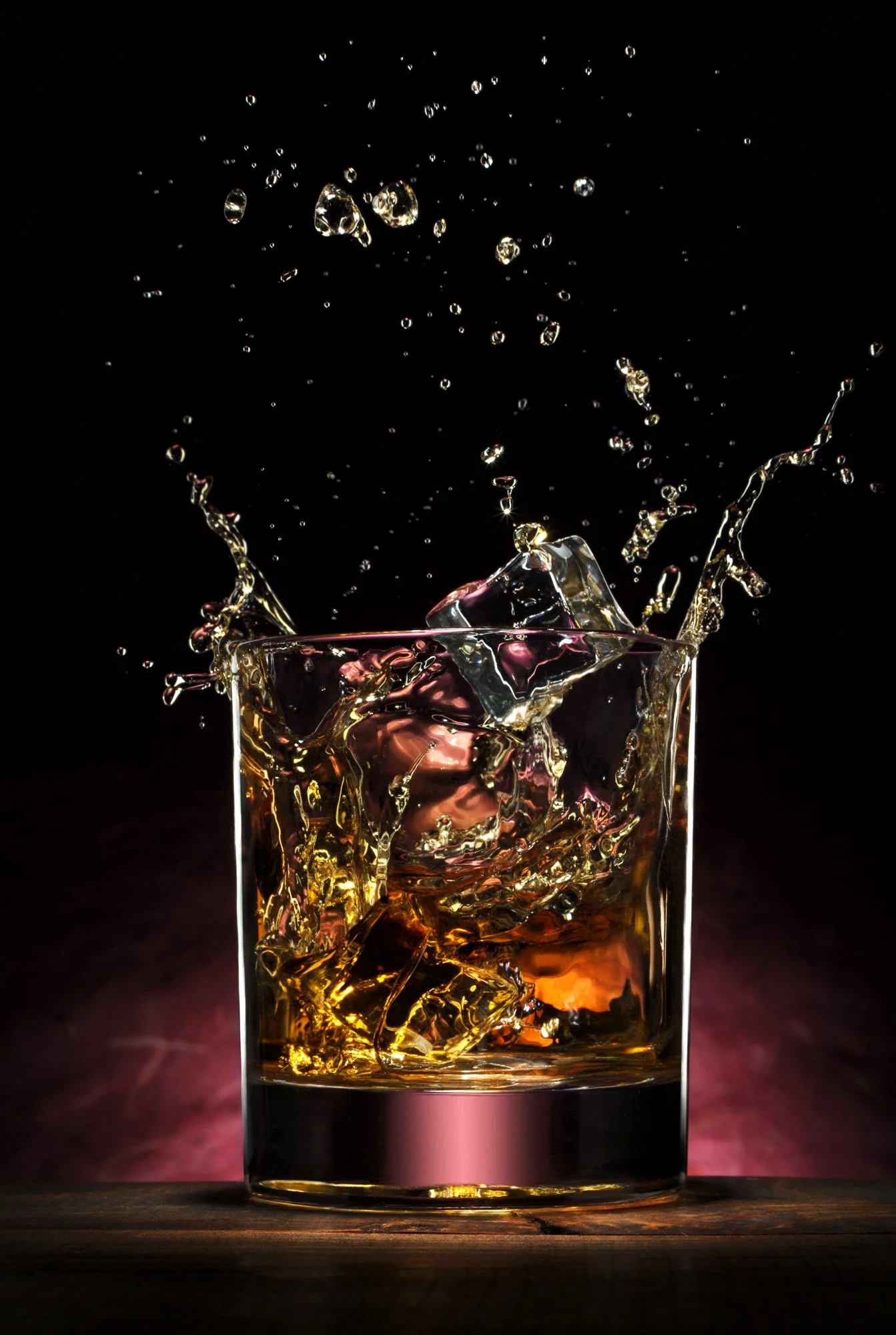 The set up was straight forward and I was able to get an image I liked within a few minutes. I spent a little time moving things around to see if I could improve on the picture. Then as a fluke I decided to take the ice cubes out and drop one into the glass. I immediately liked the splash and switched all my lights to the “action” mode so the I could stop the droplets in mid air.